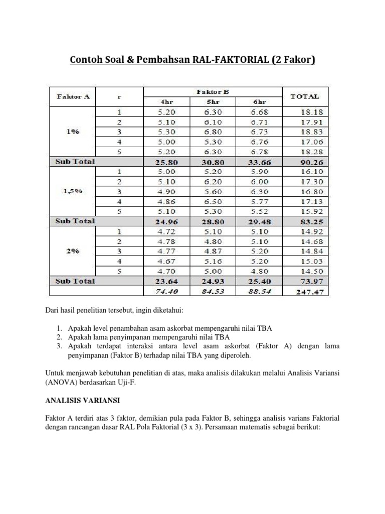 Contoh Soal Dan Jawaban Rancangan Pelakuan Percobaan Faktorial Bali Teacher