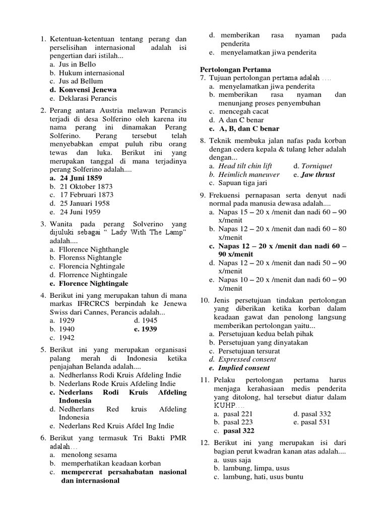 Berisi kumpulan soal-soal Ujian Nasional IPA tingkat SMP dari tahun 2008-2018. Soal jumbara pmr 2019 beserta kunci jawaban 23 sep 2016 1 comment. Konvensi jenewa II 6 Juli 1906 itu membahas perlindungan tentang korban perang orang sakit petugas kesehatan petugas Agama Angkatan Laut dan kapal.