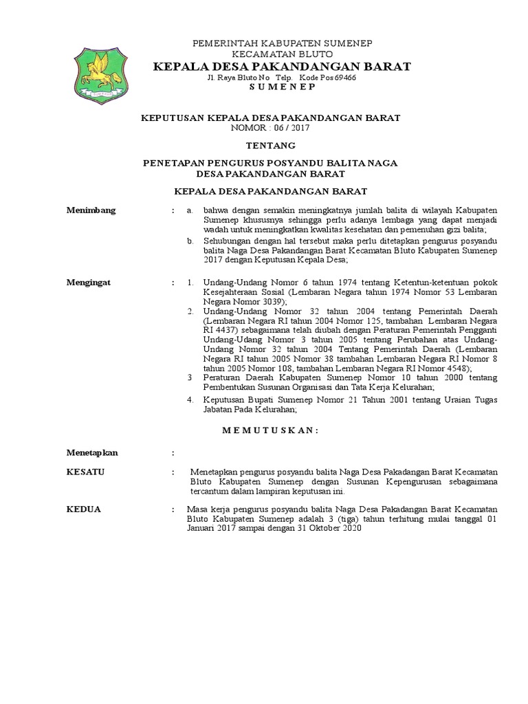 6 SK PETUGAS KEBERSIHAN KEPUTUSAN KADES TAHUN 2020 2020-02-24 113555. Terpadu posyandu benteng dengan pelayanan kesehatan reproduksi remaja di desa nunggi kecamatan wera. Contoh SK Kades Penunjukan Kader Posyandu Lansia Desa Tahun 2020 Ditulis pada.